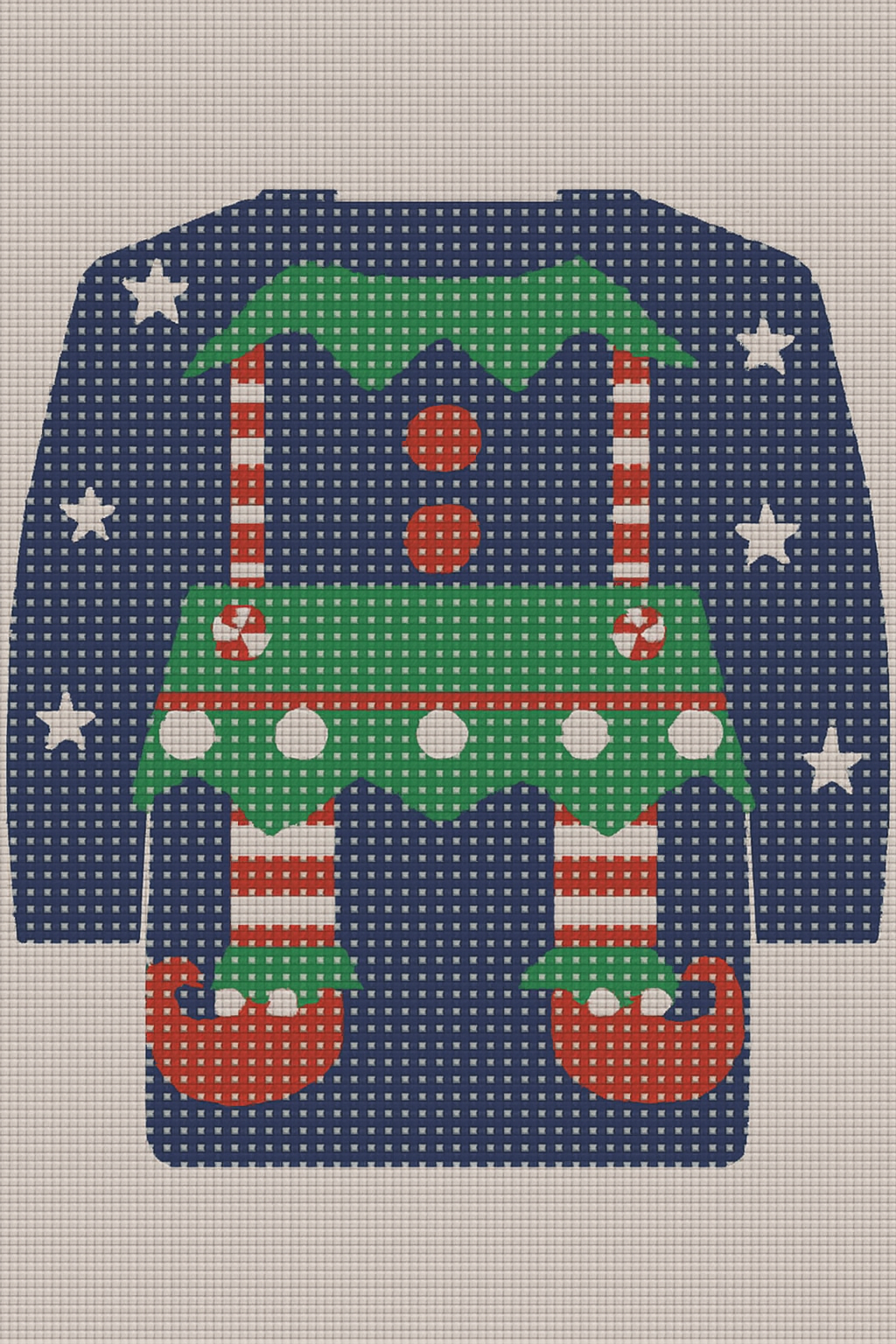 This charming holiday sweater needlepoint canvas is bursting with festive spirit and whimsy. This design is meant to capture the joyful, slightly cheeky charm of a classic "ugly Christmas sweater"